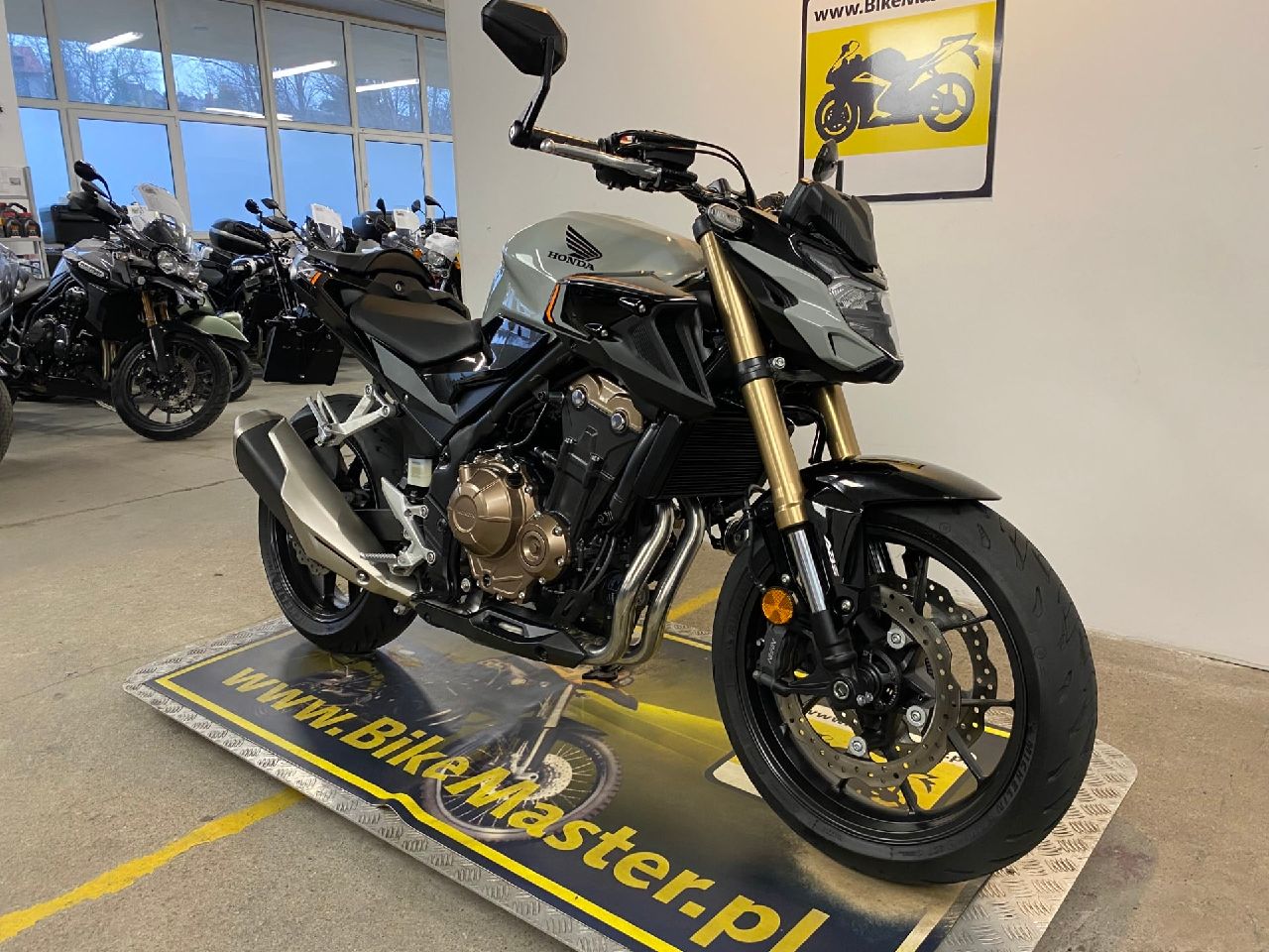 HONDA CBF500 ABS, sprowadzony z Niemiec, data pierwszej rejestracji 18.07.2023 r, na gwarancji do lipca 2025 r, przebieg to zaledwie 2207 km którego oryginalność potwierdzamy wpisując go na fakturze zakupu. Zarówno pod względem technicznym jak i wizualnym motocykl w IDEALNYM stanie, absolutnie bezwypadkowy w oryginalnym lakierowaniu. Wygląda i jeździ JAK NOWY !!! Wyposażony w system ABS oraz oświetlenie LED. Idealna propozycja dla osób rozpoczynających przygodę z motocyklami oraz posiadaczy Prawa Jazdy kategorii A2 !!! Zapraszamy do bezpośredniego zapoznania się z ofertą w siedzibie naszej firmy.