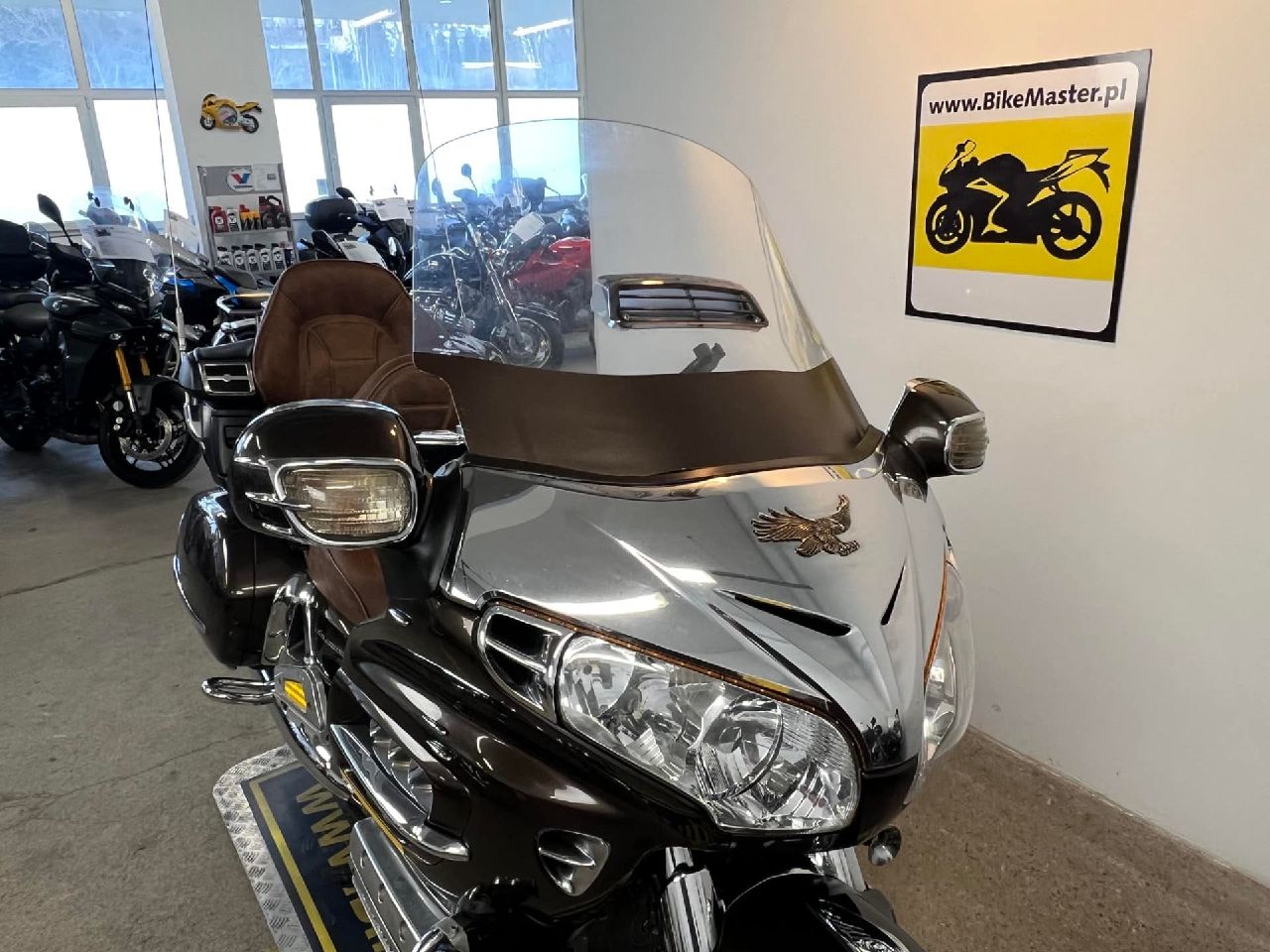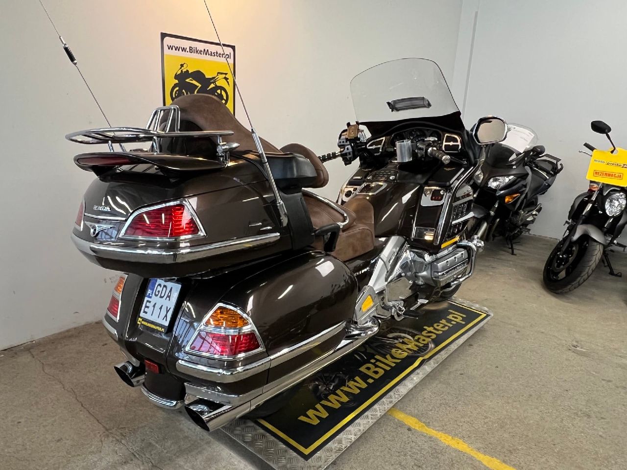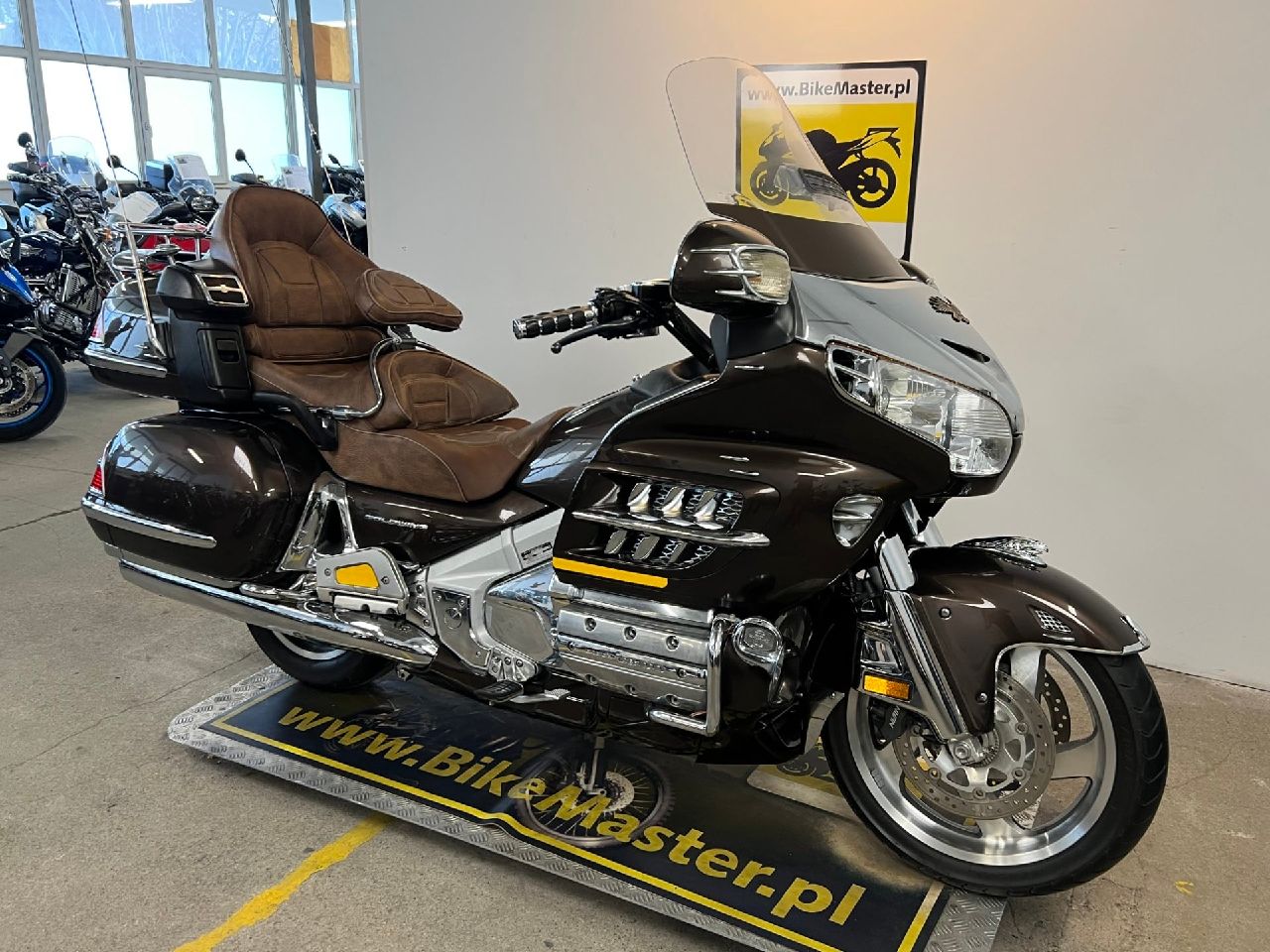 HONDA GL1800 GOLDWING w bogatej wersji 30-ANNIVERSARY EDITION.Pierwsza rejestracja 20.08.2001 r.Motocykl zarejestrowany oraz ubezpieczony w Polsce.Przebieg to 116483 km potwierdzony w systemie CEPIK . Zarówno pod względem technicznym jak i wizualnym motocykl w bardzo dobrym wręcz IDEALNYM stanie !!! Absolutnie bezwypadkowy w oryginalnym lakierowaniu. WERSJA EUROPEJSKA z licznikiem w kilometrach, BOGATO WYPOSAŻONY !!! System ABS, radio, tempomat,uchwyt na telefon , wsteczny bieg, oparcie kierowcy, dodatkowe oświetlenie LED, wersja w chromach itd …. (lista jest długa) GoldWing-a 1800 nie trzeba nikomu przedstawiać. Komfort jazdy nieporównywalny z żadnym innym motocyklem !!! Idealna propozycja dla kogoś kto bardziej niż prędkość ceni sobie wygodę i klimat dalekiej podróży. PRAWDZIWA LEGENDA !!! Zapraszamy do bezpośredniego zapoznania się z ofertą w siedzibie naszej firmy.