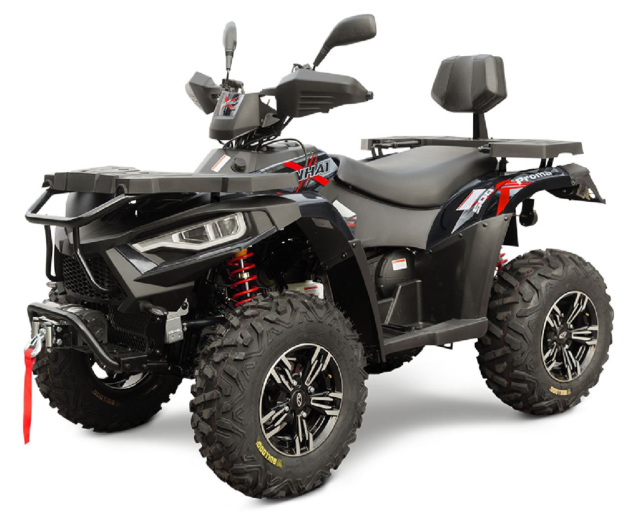 Linhai 500 4x4 Promax może pochwalić się bogatym wyposażeniem standardowym, które oprócz elektrycznie przełączanego napędu 4x4 obejmuje przedni i tylny bagażnik, przedni bumper, aluminiowe felgi, elektryczną wyciągarkę o sile uciągu 3000lbs z pilotem, kulę haka holowniczego, osłony dłoni, światła LED do jazdy dziennej, podwójne reflektory projekcyjne oraz kierunkowskazy LED.
