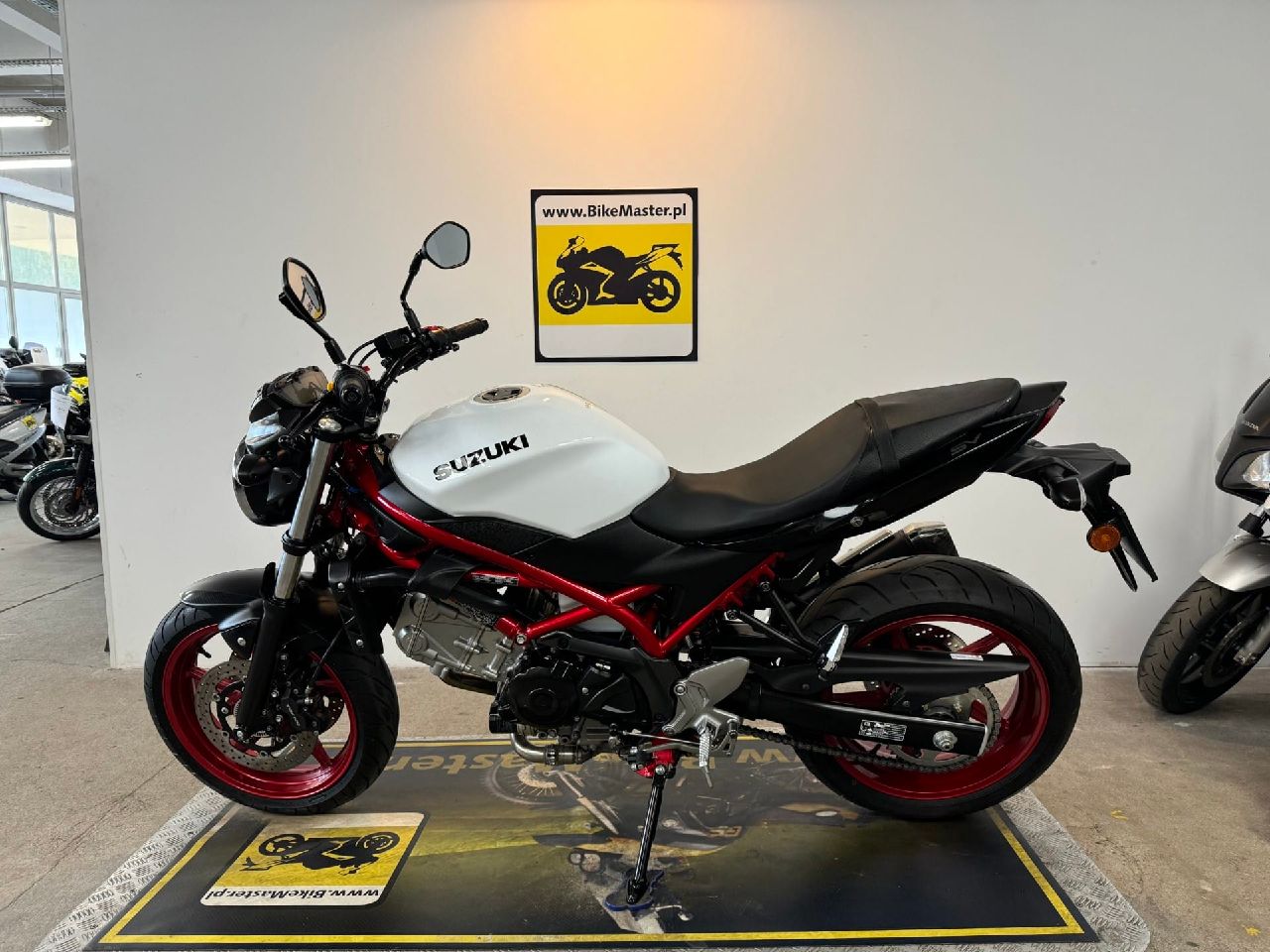 SUZUKI SV650 ABS, sprowadzony z Niemiec bezpośrednio od PIERWSZEGO WŁAŚCICIELA OD NOWOŚCI !!! Data pierwszej rejestracja 23.07.2021 r, przebieg to zaledwie 7669 km potwierdzony i udokumentowany wydrukiem z ostatniego przeglądu na stacji diagnostycznej przy 6722 km, oryginalną książką serwisową. Zarówno pod względem wizualnym jak i technicznym motocykl w bardzo dobrym stanie, bezwypadkowy w oryginalnym lakierowaniu. Wszystkie główne podzespoły takie jak silnik, skrzynia biegów oraz układ napędowy pracują prawidłowo. Idealna propozycja dla posiadaczy Prawa Jazdy kategorii A2 ze względu na obniżoną moc do 35kW !!! Istnieje możliwość przywrócenia PEŁNEJ MOCY !!! Bardzo ładny i zadbany egzemplarz z niskim udokumentowanym przebiegiem, GODNY POLECENIA !!! Zapraszamy do bezpośredniego zapoznania się z ofertą w siedzibie naszej firmy.