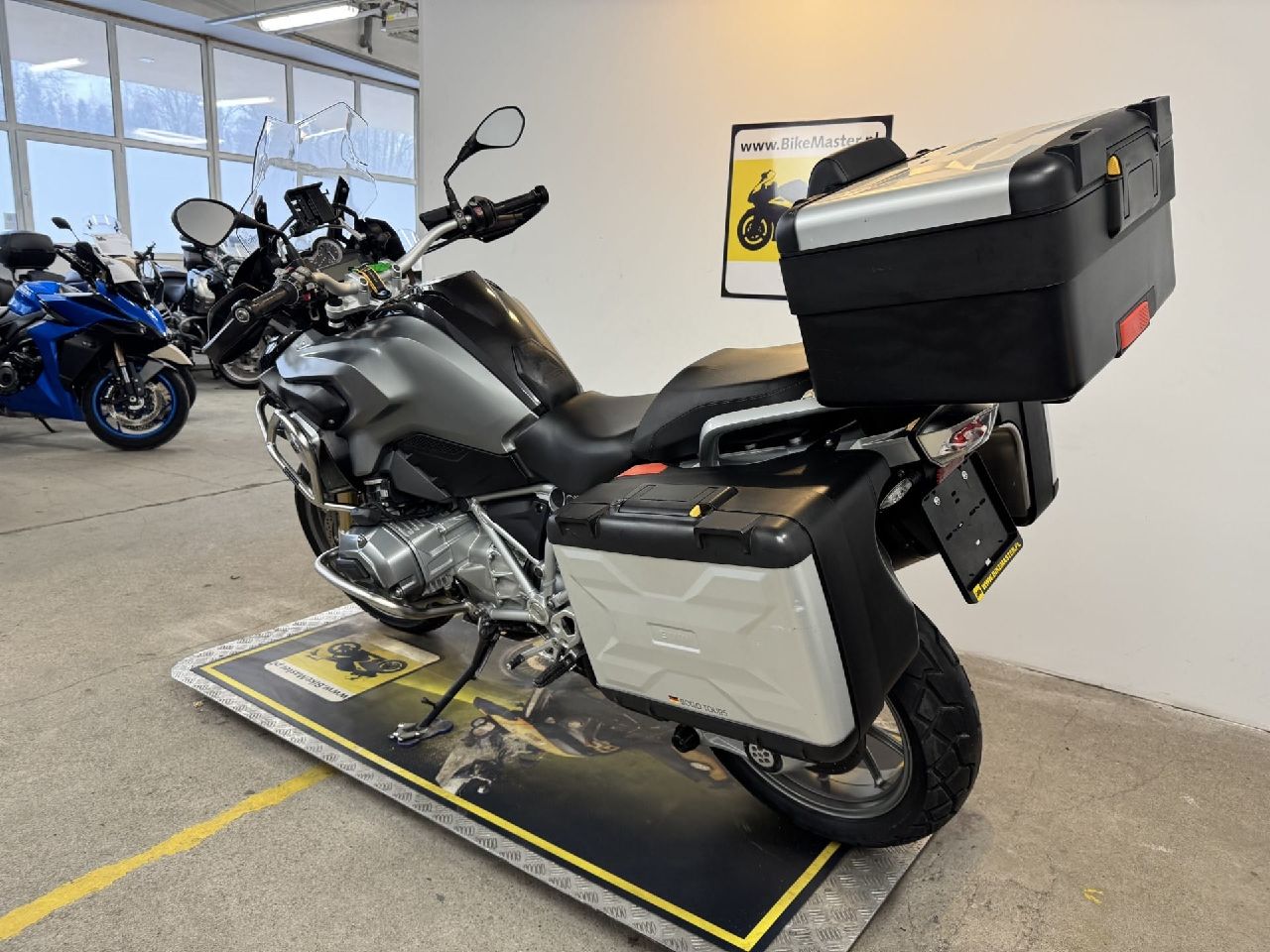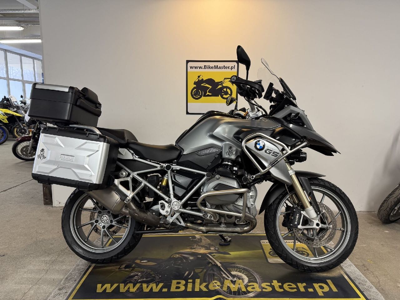 BMW R1200GS LC, sprowadzony z Niemiec, data pierwszej rejestracji 10.04.2013 r, przebieg to 62412 km w pełni potwierdzony i udokumentowany książką serwisową, wydrukami z przeglądów na stacjach diagnostycznych tzw. „TUV” oraz rachunkami serwisowymi. Wszystkie serwisy w ASO BMW !!! Zarówno pod względem technicznym jak i wizualnym motocykl w bardzo dobrym stanie, absolutnie bezwypadkowy w oryginalnym lakierowaniu. Wszystkie główne podzespoły takie jak silnik, skrzynia biegów oraz układ napędowy pracują prawidłowo. Wyposażony w 3 oryginalne kufry BMW, akcesoryjny tłumik renomowanej marki AKRAPOVIC HP, system ABS, system DYNAMIC ESA (elektryczna regulacja zawieszeniem) system ASC (kontrola trakcji) zmienne tryby jazdy, system RDC, komputer pokładowy, tempomat, podgrzewane manetki, hand-bary, gmole góra i dół, oświetlenie LED, halogeny, uchwyt do nawigacji Germin, fabryczne kierunkowskazy LED oraz mini gniazdo 12V. Bardzo ładny egzemplarz, GODNY POLECENIA !!! Zapraszamy do bezpośredniego zapoznania się z ofertą w siedzibie naszej firmy.