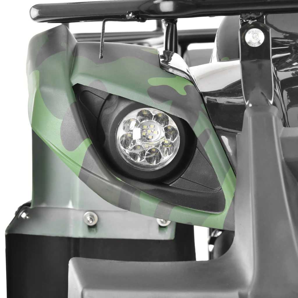Quad napędzany czterosuwowym, chłodzonym powietrzem silnikiem o pojemności 125cm3 i mocy 7,6KM. Z pewnością może posłużyć jako źródło świetnej zabawy, lub jako pomocnik w ogrodzie. Nawet osoba całkowicie początkująca może szybko nauczyć się obsługi tego pojazdu. Zmiana biegów odbywa się za pomocą dźwigni obsługiwanej stopą, są trzy biegi do przodu i jeden wsteczny. Sprzęgło jest automatyczne. Pod kierownicą znajduje się klasyczna stacyjka z kluczykiem, który służy jako wyłącznik główny. Start silnika następuje po naciśnięciu odpowiedniego przycisku na uchwycie kierownicy. Przepustnicą, podobnie jak w większości quadów, steruje się za pomocą dźwigni, kciukiem prawej dłoni. Gdy kluczyk w stacyjce jest przekręcony, wyświetlacz zapala się nad kierownicą i wyświetla nie tylko prędkość, ale także aktualnie włączony bieg. Kolor podświetlenia można łatwo zmieniać naciskając odpowiedni przycisk. Hamulce są obsługiwane za pomocą dźwigni na kierownicy. Dźwignię można zablokować w pozycji zamkniętej w celu zabezpieczenia quada przed przemieszczaniem po zaparkowaniu. Jest wyposażony w przednie hamulce bębnowe i tylne hamulce tarczowe.