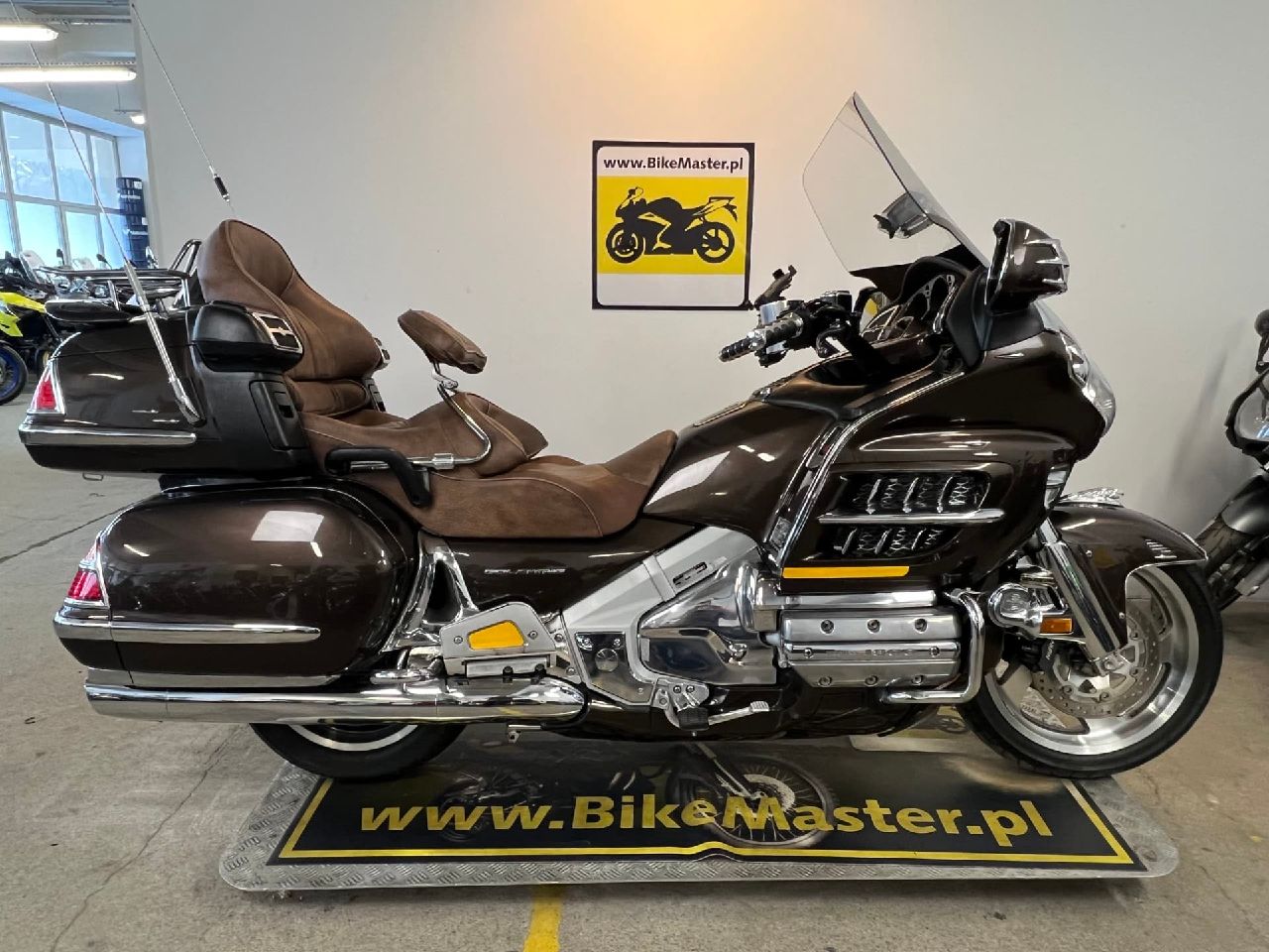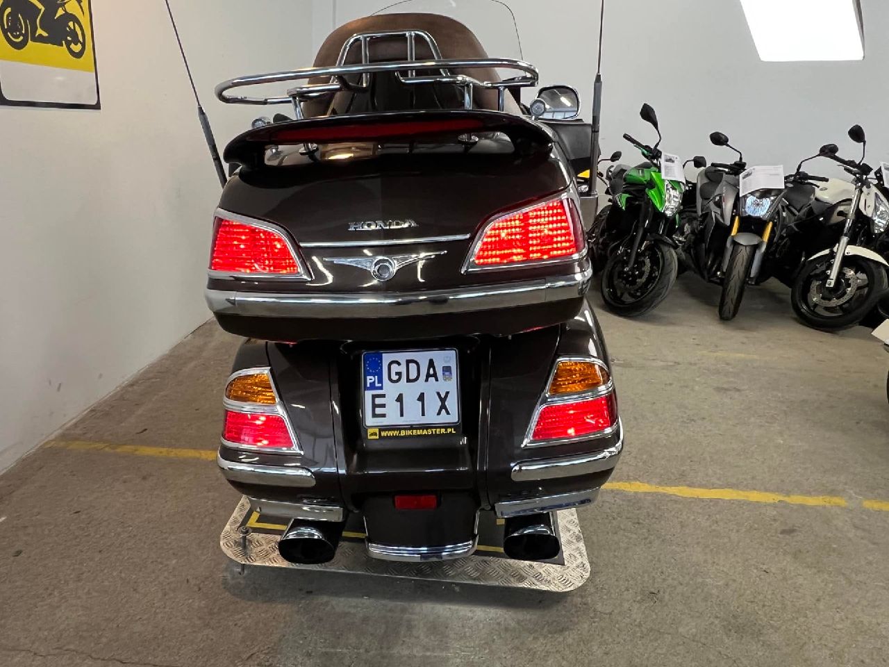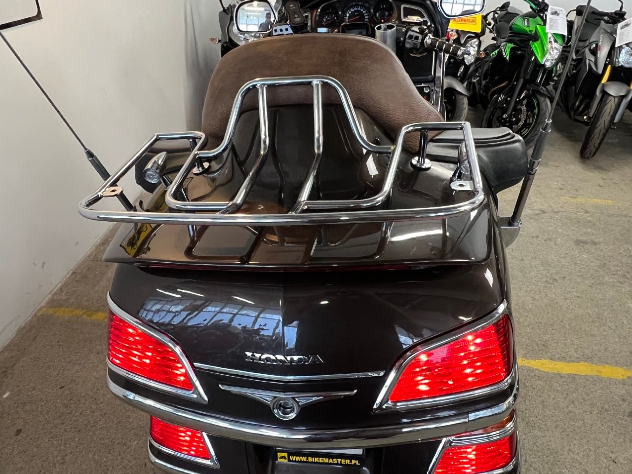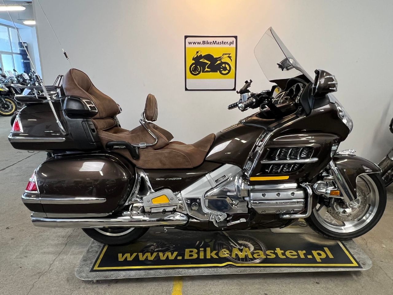 HONDA GL1800 GOLDWING w bogatej wersji 30-ANNIVERSARY EDITION.Pierwsza rejestracja 20.08.2001 r.Motocykl zarejestrowany oraz ubezpieczony w Polsce.Przebieg to 116483 km potwierdzony w systemie CEPIK . Zarówno pod względem technicznym jak i wizualnym motocykl w bardzo dobrym wręcz IDEALNYM stanie !!! Absolutnie bezwypadkowy w oryginalnym lakierowaniu. WERSJA EUROPEJSKA z licznikiem w kilometrach, BOGATO WYPOSAŻONY !!! System ABS, radio, tempomat,uchwyt na telefon , wsteczny bieg, oparcie kierowcy, dodatkowe oświetlenie LED, wersja w chromach itd …. (lista jest długa) GoldWing-a 1800 nie trzeba nikomu przedstawiać. Komfort jazdy nieporównywalny z żadnym innym motocyklem !!! Idealna propozycja dla kogoś kto bardziej niż prędkość ceni sobie wygodę i klimat dalekiej podróży. PRAWDZIWA LEGENDA !!! Zapraszamy do bezpośredniego zapoznania się z ofertą w siedzibie naszej firmy.