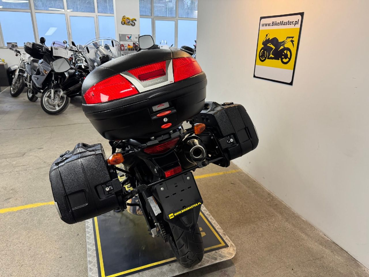 SUZUKI DL650 V-STROM ABS, sprowadzony z Niemiec bezpośrednio od drugiego właściciela od nowości. Data pierwszej rejestracji 15.08.2011 r, przebieg to 46087 km potwierdzony i udokumentowany książką serwisową, wydrukami z przeglądów na stacjach diagnostycznych oraz rachunkami serwisowymi. Zarówno pod względem technicznym jak i wizualnym motocykl w bardzo dobrym stanie, absolutnie bezwypadkowy w oryginalnym lakierowaniu. Wszystkie główne podzespoły takie jak silnik, skrzynia biegów oraz układ napędowy pracują prawidłowo. Wyposażony w system ABS, trzy, duże kufry, centralny podnóżek, dolną owiewkę tzw. pług, hand-bary oraz gniazdko 12V . Bardzo ładny i zadbany egzemplarz, GODNY POLECENIA !!! Zapraszamy do bezpośredniego zapoznania się z ofertą w siedzibie naszej firmy.