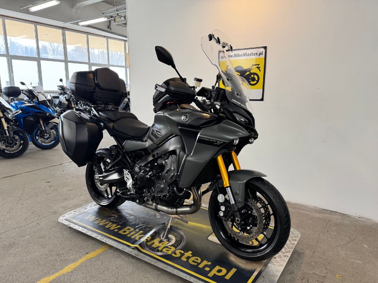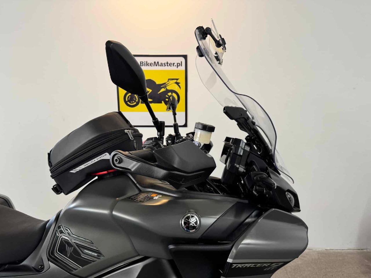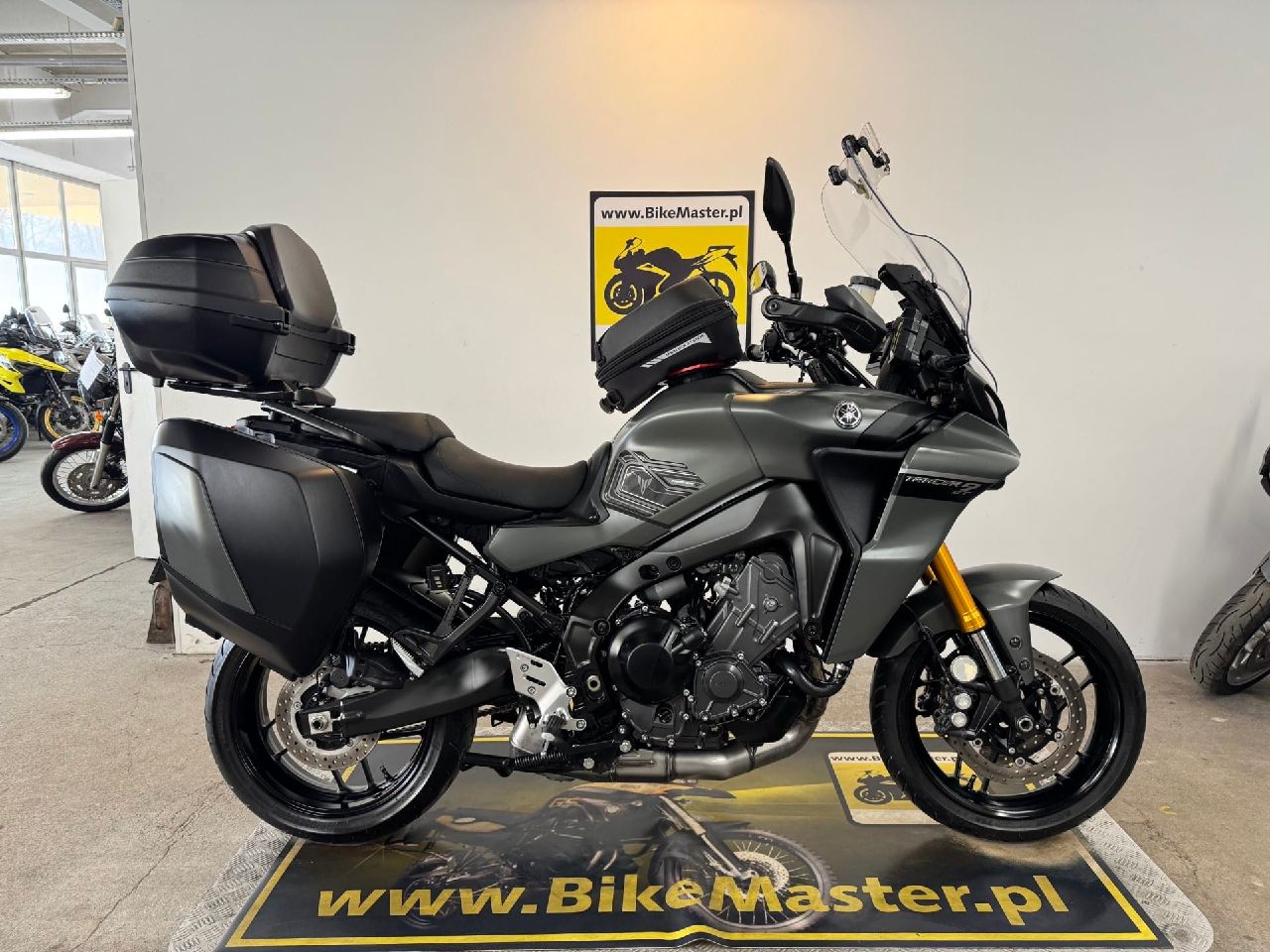 YAMAHA TRACER9 GT ABS, sprowadzony z Niemiec od PIERWSZEGO WŁAŚCICIELA OD NOWOŚCI !!! Data pierwszej rejestracji 23.05.2022 r, przebieg to zaledwie 12758 km potwierdzony i udokumentowany książką serwisową z ostatnim wpisem z maja 2024 r. przy 9012 km oraz wydrukiem z przeglądu na stacji diagnostycznej tzw. „TUV”. Zarówno pod względem technicznym jak i wizualnym motocykl w IDEALNYM stanie, absolutnie bezwypadkowy w oryginalnym lakierowaniu. Wszystkie główne podzespoły takie jak silnik, skrzynia biegów oraz układ napędowy pracują prawidłowo. Najbogatsza wersja wyposażenia GT !!! Między innymi: moduł bezwładnościowy IMU, który steruje systemem kontroli trakcji, systemem kontroli uślizgu, systemem kontroli unoszenia przedniego koła oraz systemem kontroli hamowania, półaktywne zawieszenie KYB, Quick Shifter działający góra-dół, oświetlenie LED z doświetlaniem zakrętów, 3 oryginalne kufry, torba na zbiorniku, tempomat, dwa wyświetlacze TFT, nawigację GARMIN ZUMO XT, fabryczne, podgrzewane manetki oraz deflektor na szybie. Bardzo ładny, zadbany i świetnie wyposażony egzemplarz, GODNY POLECENIA !!! Zapraszamy do bezpośredniego zapoznania się z ofertą w siedzibie naszej firmy.