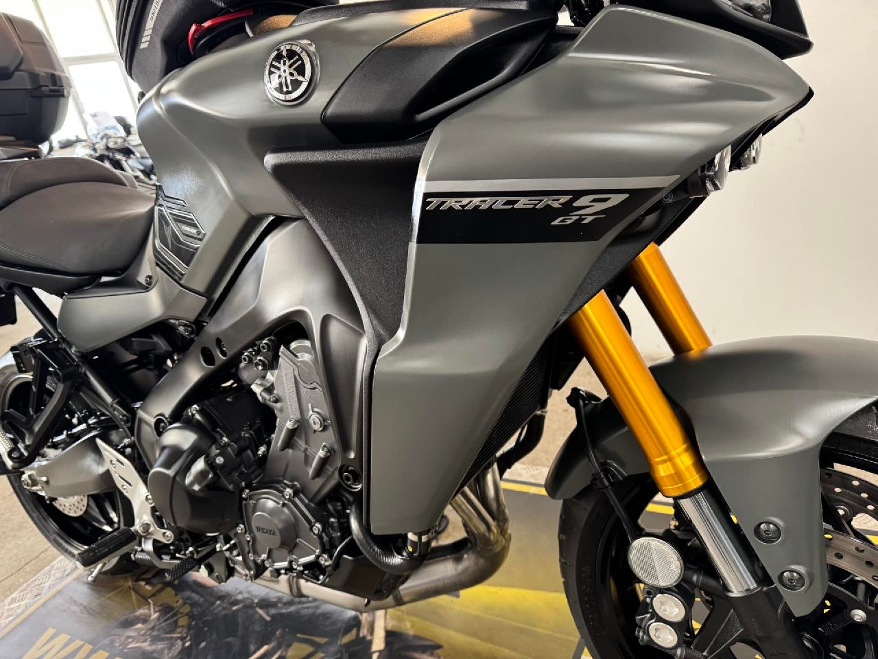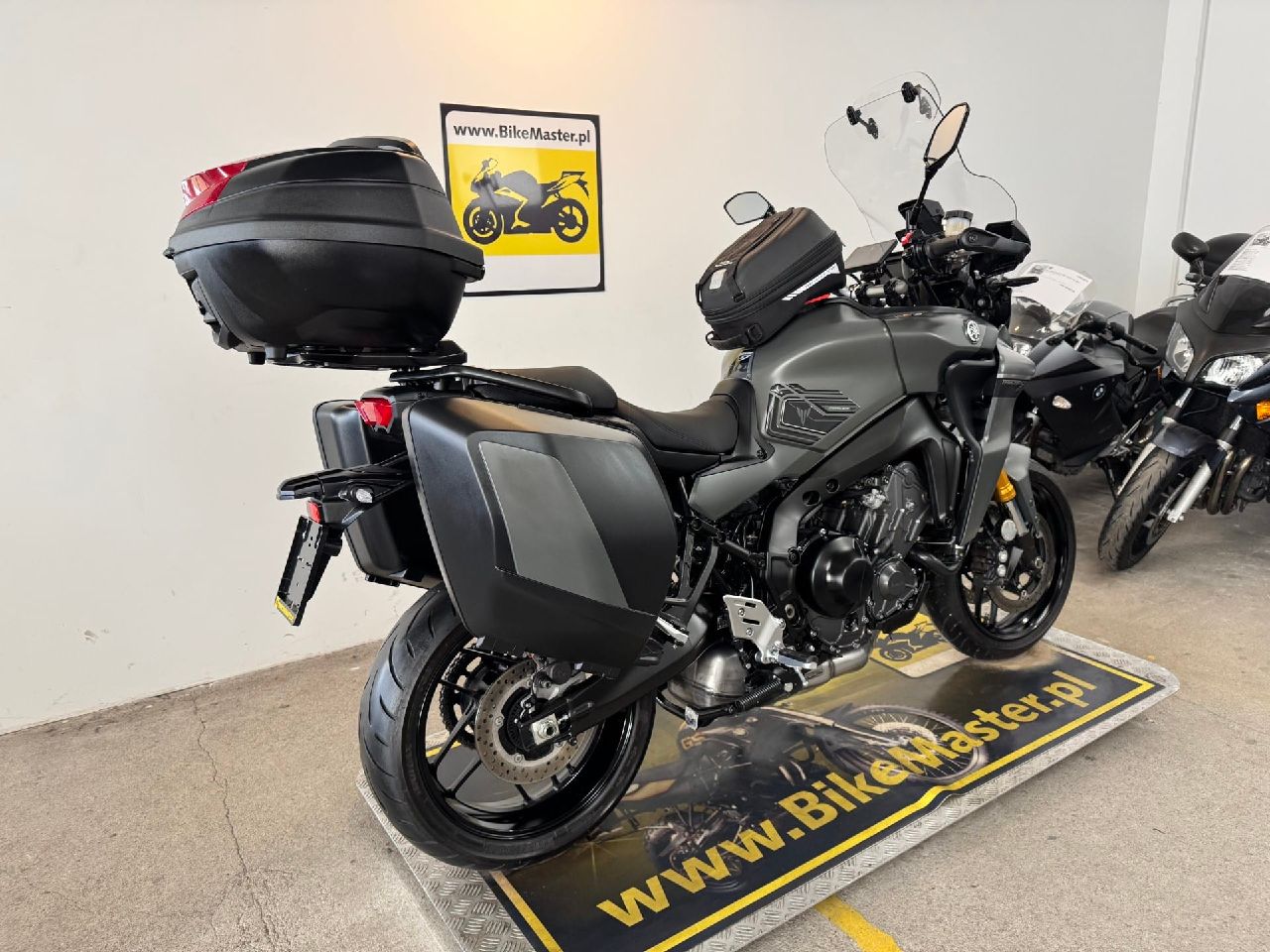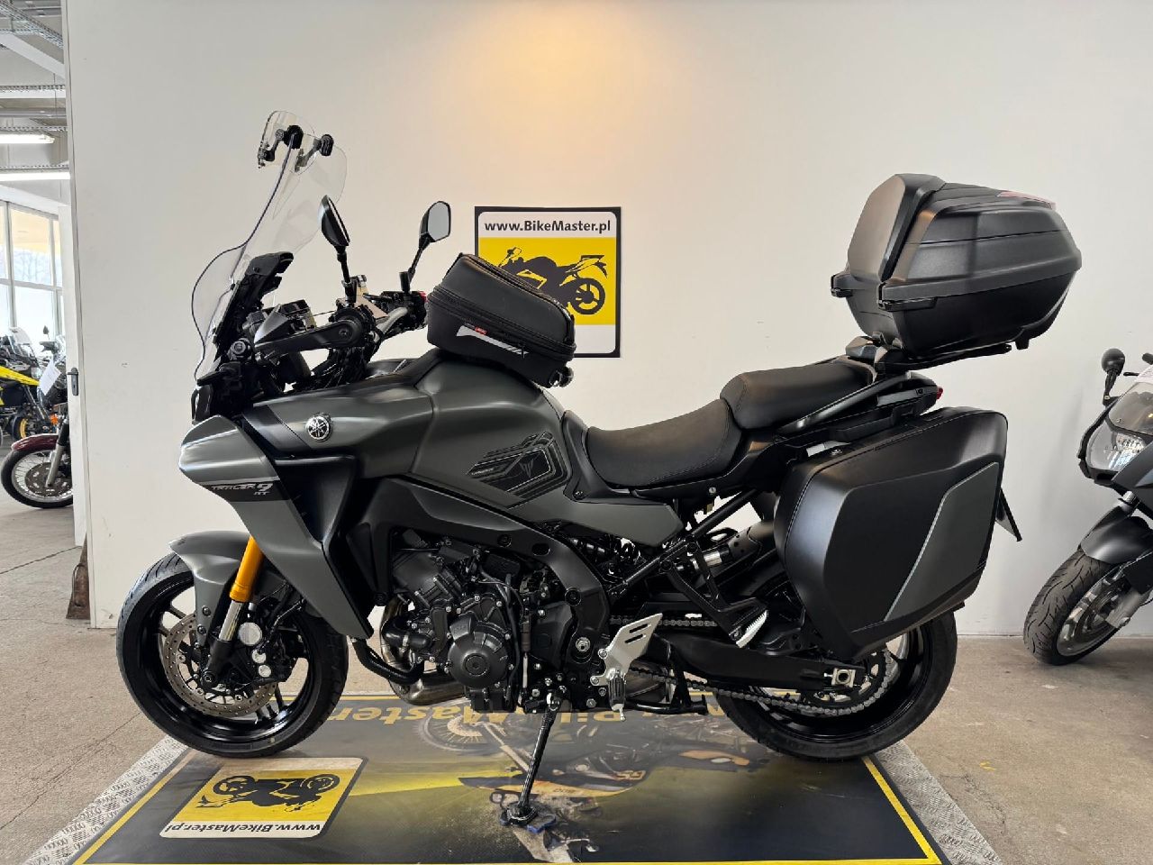 YAMAHA TRACER9 GT ABS, sprowadzony z Niemiec od PIERWSZEGO WŁAŚCICIELA OD NOWOŚCI !!! Data pierwszej rejestracji 23.05.2022 r, przebieg to zaledwie 12758 km potwierdzony i udokumentowany książką serwisową z ostatnim wpisem z maja 2024 r. przy 9012 km oraz wydrukiem z przeglądu na stacji diagnostycznej tzw. „TUV”. Zarówno pod względem technicznym jak i wizualnym motocykl w IDEALNYM stanie, absolutnie bezwypadkowy w oryginalnym lakierowaniu. Wszystkie główne podzespoły takie jak silnik, skrzynia biegów oraz układ napędowy pracują prawidłowo. Najbogatsza wersja wyposażenia GT !!! Między innymi: moduł bezwładnościowy IMU, który steruje systemem kontroli trakcji, systemem kontroli uślizgu, systemem kontroli unoszenia przedniego koła oraz systemem kontroli hamowania, półaktywne zawieszenie KYB, Quick Shifter działający góra-dół, oświetlenie LED z doświetlaniem zakrętów, 3 oryginalne kufry, torba na zbiorniku, tempomat, dwa wyświetlacze TFT, nawigację GARMIN ZUMO XT, fabryczne, podgrzewane manetki oraz deflektor na szybie. Bardzo ładny, zadbany i świetnie wyposażony egzemplarz, GODNY POLECENIA !!! Zapraszamy do bezpośredniego zapoznania się z ofertą w siedzibie naszej firmy.